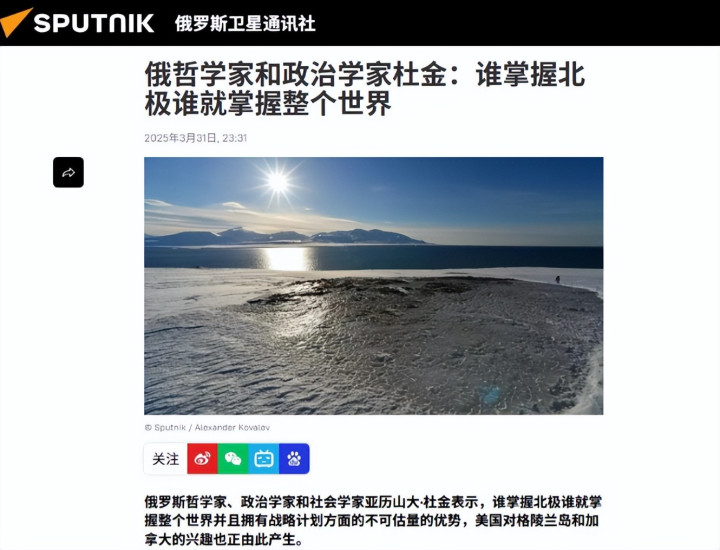 它没有热带的喧嚣,却潜藏着更大的危险,俄罗斯智囊杜金断言,下一场战争就在这片冰原。